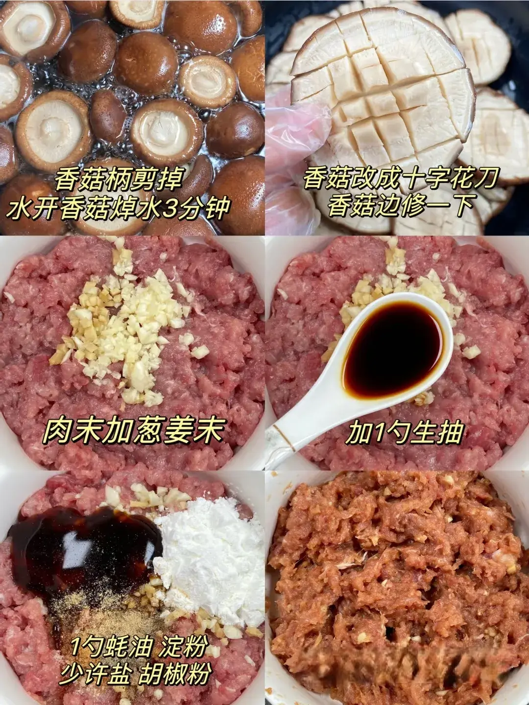 1. 香菇去蒂,洗净备用;虾仁剁成泥,加入鸡蛋和淀粉搅拌均匀。