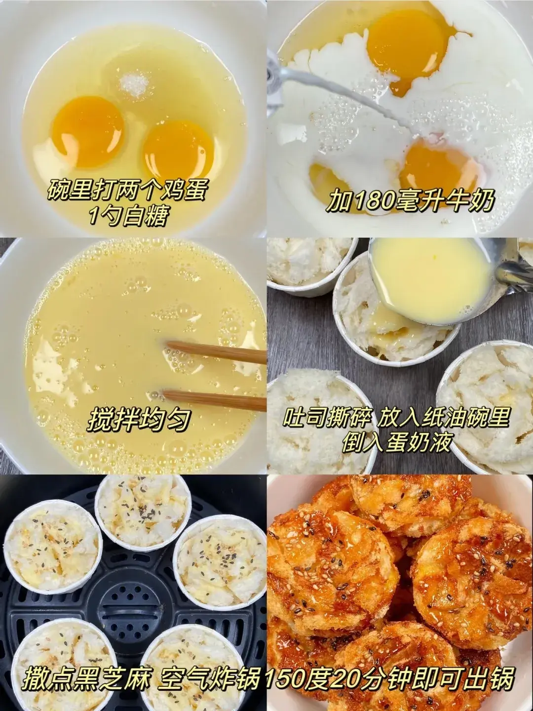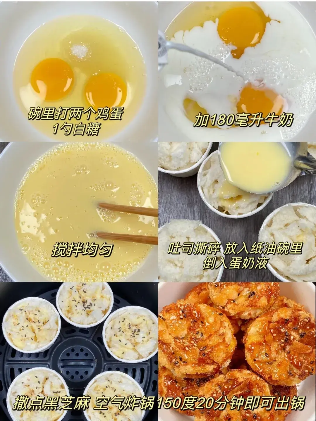 食材:吐司4片、鸡蛋2个、牛奶200毫升、白糖适量