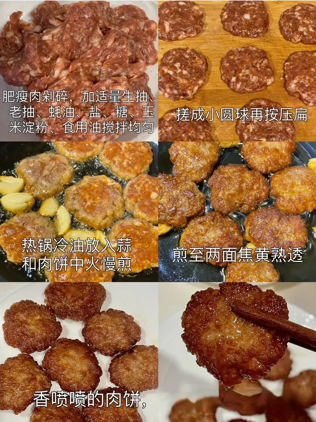 3. 热锅倒油,放入肉饼,小火煎至两面金黄,熟透即可出锅。